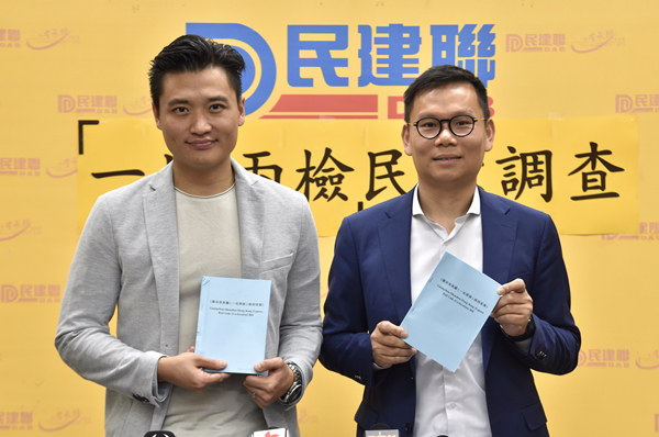 民建聯於4月23日至5月1日委託香港民意調查中心,以電話形式訪問了878名18歲以上的香港居民。調查發現,對政府公布的「一地兩檢」方案,將會有內地執法人員在西九高鐵站指定範圍執行內地刑事法律,他們并不會離開內地口岸區執法——對此,有63%的受訪者表示贊成,不贊成的只有三成。