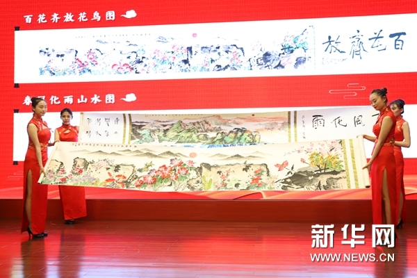 在开幕式上,主办方特别展出了多位著名书画家集体为此次展览创作的多幅《盛世繁花图》、《盛世山水图》题材作品,其中部分作品赠送南非、斯里兰卡、缅甸和日本大使馆收藏,其余作品收益的一部分捐助改善山西兴县老区青少年的艺术文化教育。(文/袁思陶)