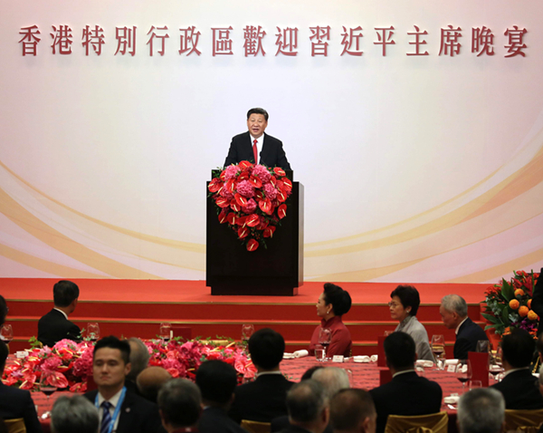 2017年6月30日,習近平主席在特區政府舉行的歡迎晚宴上致辭,鼓勵港人要相信自己、相信香港、相信國家。