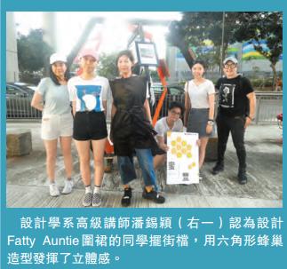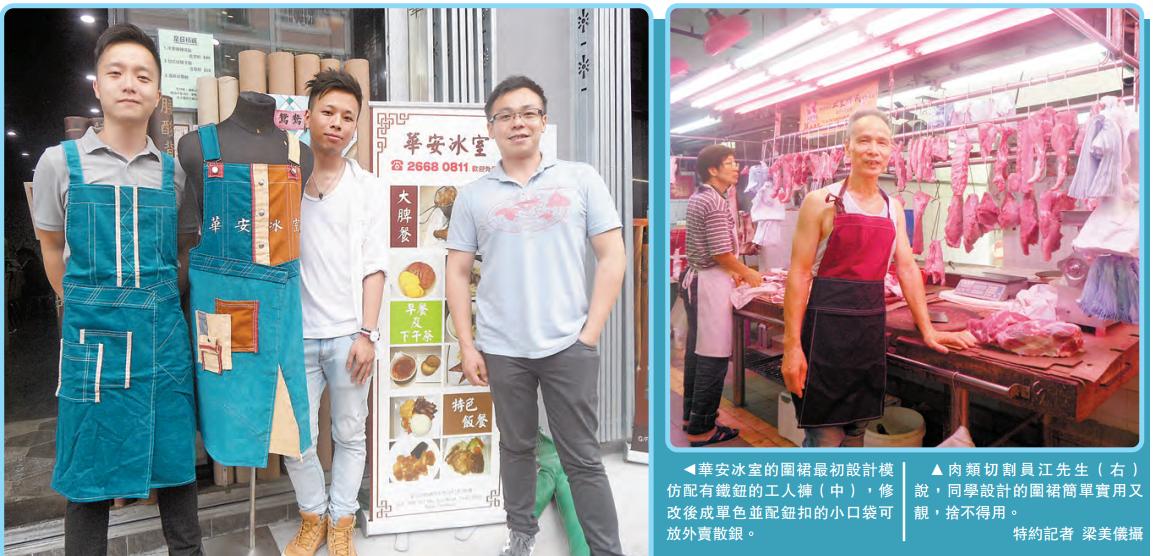 食得喜小食屋黎姓女店主告訴記者,當收到像時裝般設計的兩件頭圍裙時有點驚喜。為她設計的那組同學說,最初構思是一件頭,後來認識年輕的黎小姐和她的男拍檔,了解他們工作上需要洗碗及送外賣後,設計出單件或兩件同穿、白色配杏色、配上大圓扣男女適用的時尚圍裙。