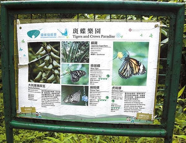 鳳園豎立資料牌介紹蝴蝶品種。 記者 蔡啟文攝