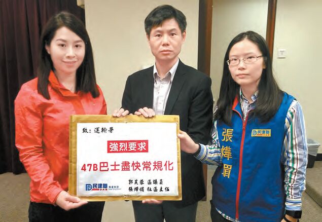 因此,自從運輸署公布有關消息後,民建聯陳恒鑌立法會議員、郭芙蓉區議員、李世隆區議員、張燁媚社區主任以及郭玲麗社區主任立即與東北葵涌的居民到運輸署及九巴抗議,強烈譴責運輸署及九巴漠視民意,並要求九巴增派巴士,開辦47B巴士路線。