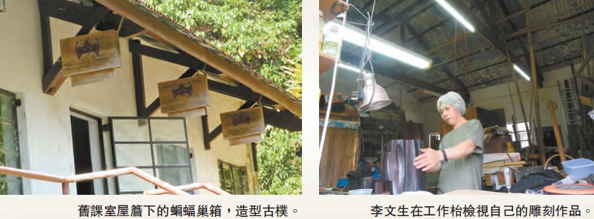 鏡蓉小學是李文生的母校,舊課室的外貌保持良好,屋簷下還架設了蝙蝠巢箱。惟課室門有點生鏽,推動時發出吱吱聲。門後的天地嚇你一跳,屋兩旁放滿物件,只留中間兩三呎闊通道容人走過,近窗的地方是工作。從室內環境推斷,似有一段時間沒好好打理。