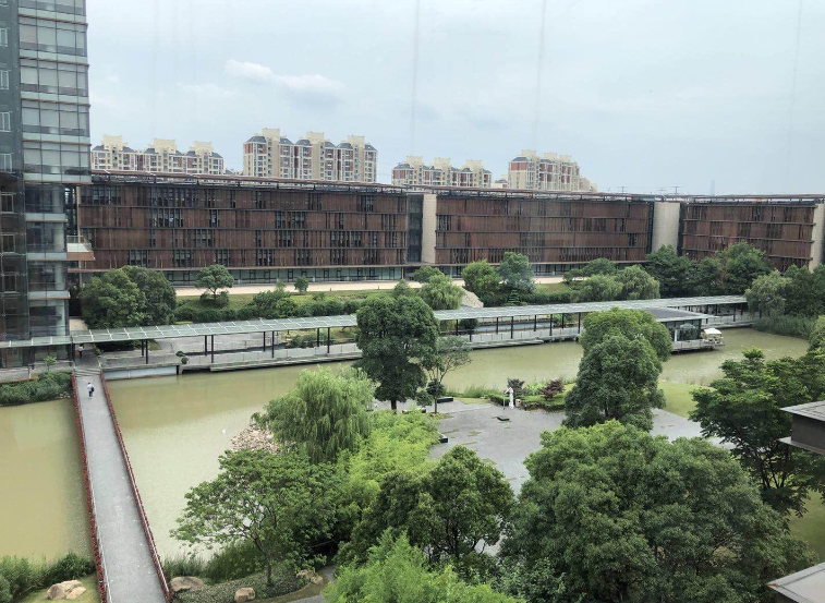 農行數據中心從外面看與一般的現代化建築無異,走進裏面才發現別有洞天,園區內18個建築單體圍成「四合院」式,湖水漣漣,兩隻黑天鵝游弋其中,有同行感慨「農行數據中心這是要管住黑天鵝啊」,引發眾人大笑。