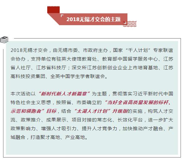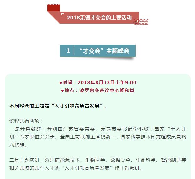 8月13日-14日,无锡市委、市政府将举办2018高层次人才创新创业无锡交流大会(简称“才交会”)。