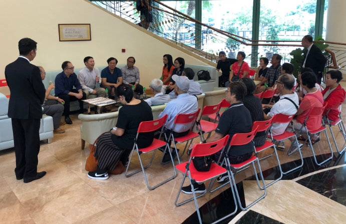 徐英偉(在座白衫者)在嘉湖鄉村俱樂部大堂,直接與市民對話。