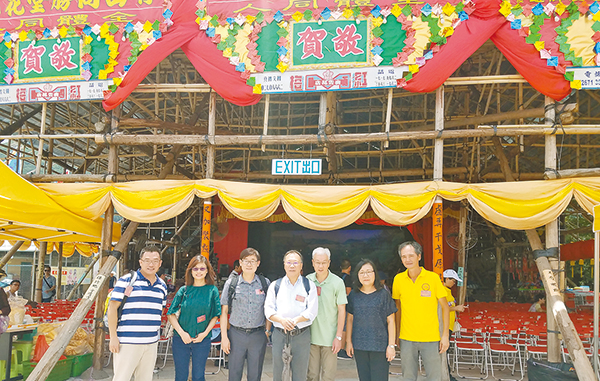 沙螺灣村村長李秀梅(右二)與前來祝賀寶誕的嘉賓及村民合影。 記者 潘仲男攝