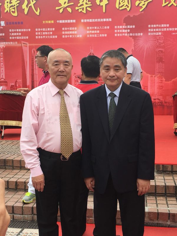 香港商報總經理、全球商報聯盟理事長張介岭(右)与华联集团董事长董炳根(左)合影