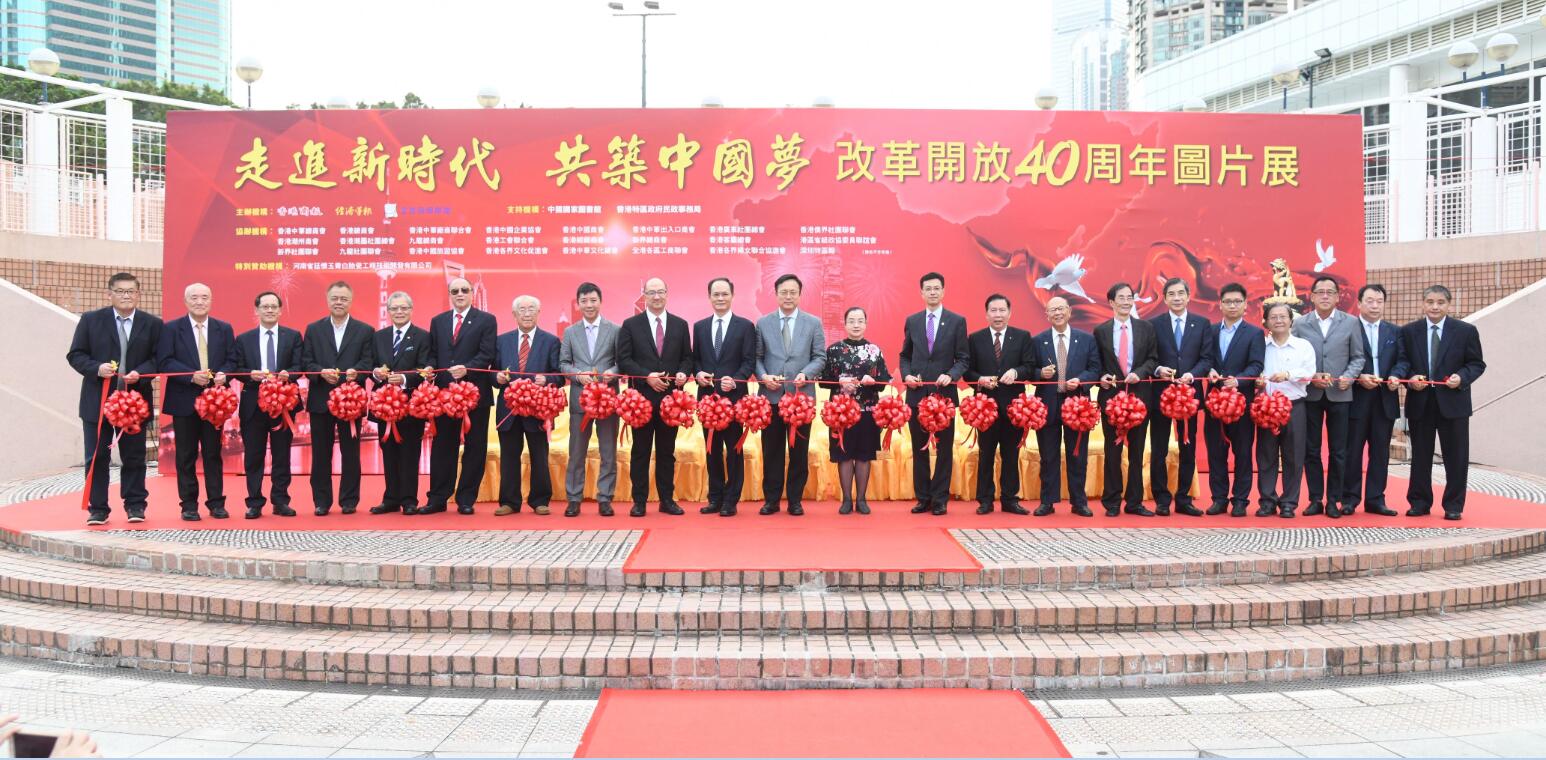 【香港商報网訊】「走進新時代 共築中國夢——改革開放40周年圖片展」昨日在尖沙咀九龍公園廣場揭幕。本次活動由香港商報、經濟導報、全球商報聯盟主辦,香港民政事務局、中國國家圖書館支持,香港中華總商會、香港總商會、香港中華廠商聯合會等23家機構及深圳特區報協辦。是次展覽目的是希望參觀者透過180面展板、近千幅生動的圖片,在陽光、綠地和清新的環境中,回望國家波瀾壯闊的改革開放歷程、感受祖國40年來取得的輝煌成就。