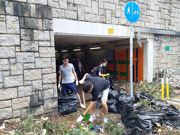 大埔支部成員與眾義工在大埔文娛中心對出的隧道清理垃圾。