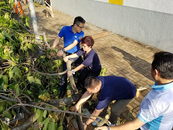 超強颱風「山竹」肆虐本港,造成多區嚴重破壞,倒塌的大樹隨處可見。雖然工人努力清理塌樹,但很多道路還需解決,所以各區市民自發清理垃圾的舉動,展現了香港人守望相助的精神。其中,有莘莘學子自發組織清理街道的行動,又有非華裔人士協助清理阻塞交通及街道的塌樹;由此可見,災後清理不分年齡、種族,每人在風災前後的付出都值得大家的尊敬。