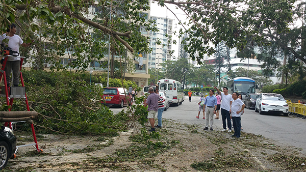 黃碧嬌議員及胡健民議員與義工共同協力把倒塌的大樹移走。