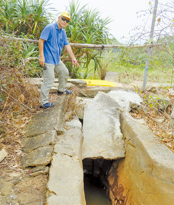 鹽光保育中心總統籌陳子良是島上原居民,一直都跟進鹽田保育事宜。他指出,入水閘板歷史跟鹽田一樣久遠,是古蹟,2008年時政府曾籲村民保留兩閘板,其中南閘的閘板,在「山竹」前因做一些工程早已換走放入村內博物館,另北閘的英泥長期受海水沖擊,本來已下陷,但閘板仍可運作,「山竹」過後已完全不能動彈,記者嘗試拉動不果。