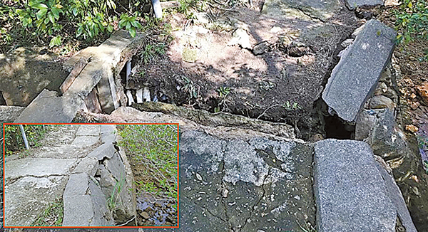 玉帶橋下方石塊爆裂拱出,成為安全隱患。