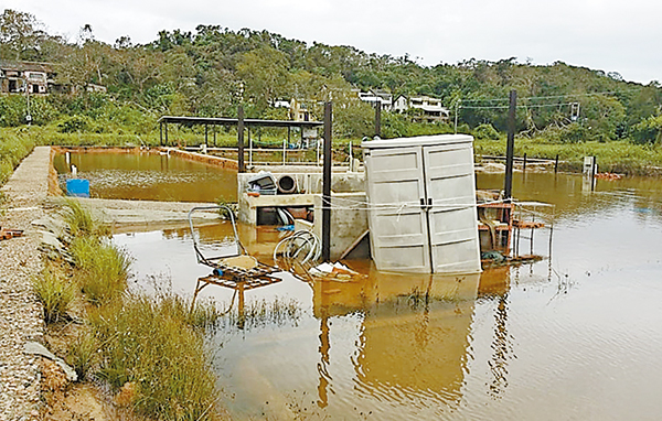 上月中「山竹」橫掃鹽田梓後,鹽田一片汪洋。 鹽光保育中心提供圖片