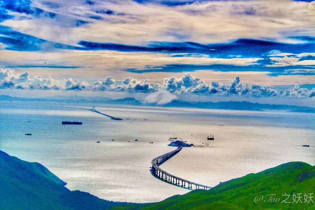 从大屿山俯瞰桥和海底隧道,它们的完美衔接让人忍不住思考,到底是怎样的智慧才能够完成这样的工程。