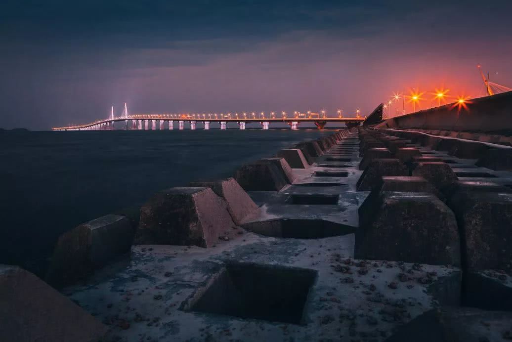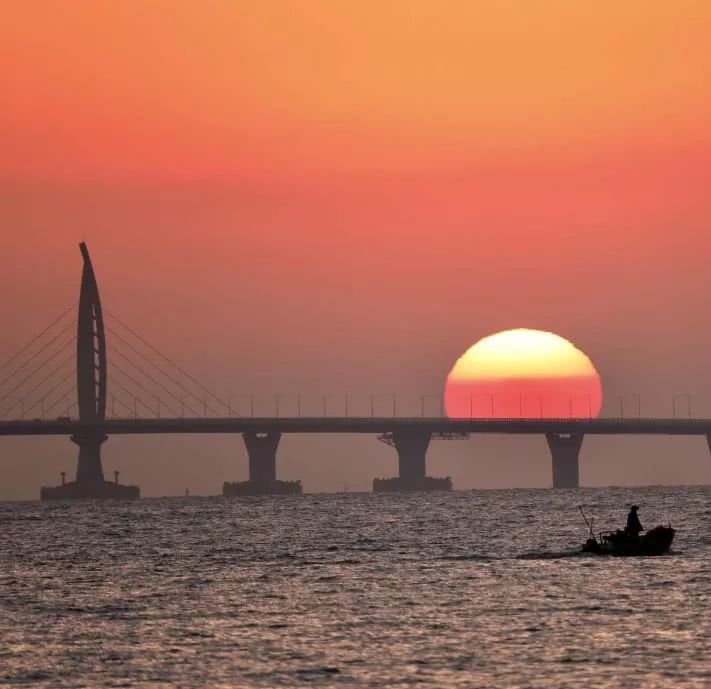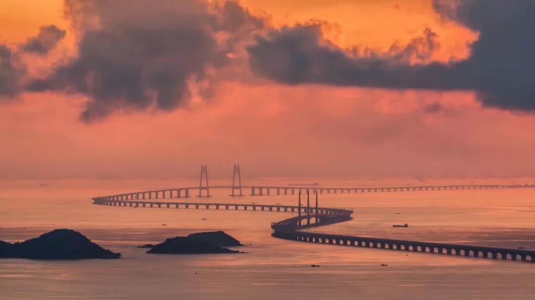夜晚降临,它宛如海上发光的“巨龙”,用最灿烂的姿态链接起港珠澳三地。