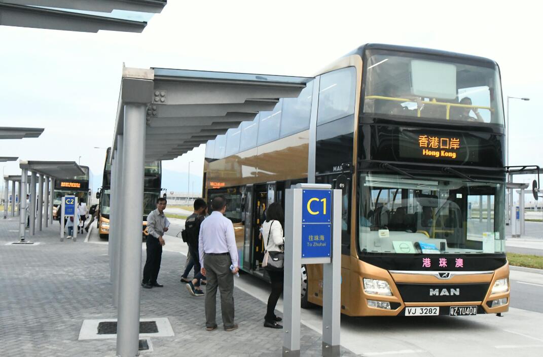 口岸旅检大楼外巴士上落客区。记者 冯瀚文摄