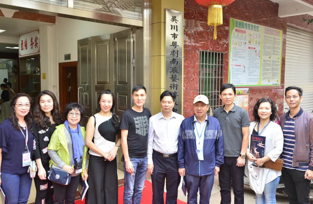 交流團團長陳耀星(右四)、副團長陳純純(右二)等成員參觀吳川粵劇團後,與文化局長肖康玉(右五)、該團團長鄭永鍵(右三)合影留念。