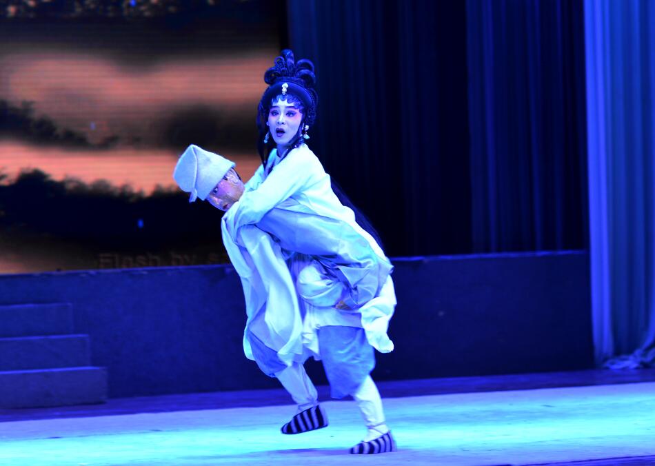 吳川花旦陳詩敏領銜的《背妹上京》,一身「演」兩個角色,將演唱與武生動作結合,一招一式見功底。