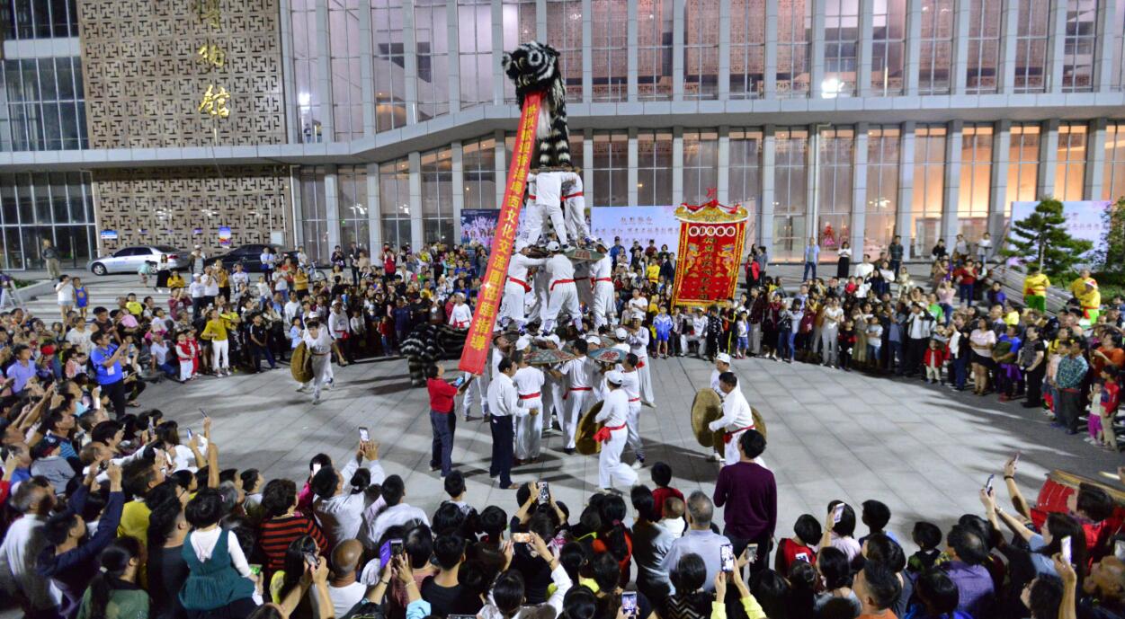 吳川以疊羅漢方式歡迎「香江粵西曲藝綻放兩地情」交流團。