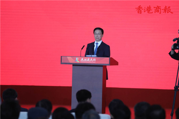 李希、林郑月娥、崔世安、韩正先后致辞。韓正表示,港珠澳大橋對促進三地人員交流往來、促進大灣區發展、提升珠三角綜合競爭力、支持港澳融入國家發展大局以及全面推進內地與港澳互利合作有重大意義。他指出,港珠澳大橋的建設標誌著中國由橋樑大國成為橋樑強國。