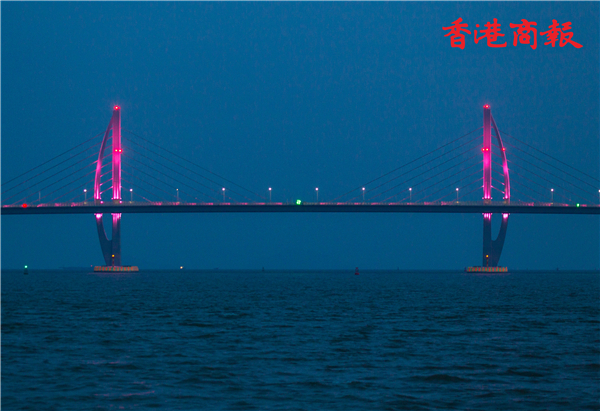 2015年2月2日,港珠澳大桥主体工程第一座桥塔——九洲航道桥206号墩上塔柱完成整体提升竖转。