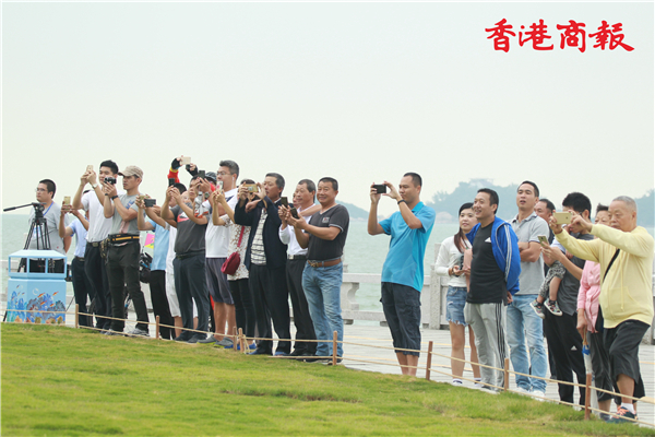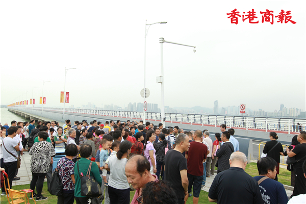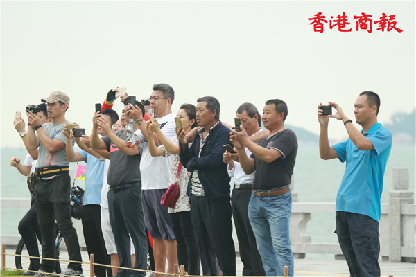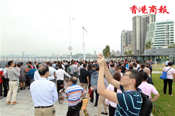 场内热闹,场外同样喜庆,大批民众到海边,见证大桥开通的历史一刻。