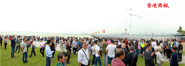 記者還從現場採訪到一名來自澳門的市民,精神矍鑠的老人家提起大橋讚不絕口,他說港珠澳大橋開通後,從澳門再去香港或者內地其他地方就會方便許多。在現場商報記者與來自香港的媒體同行也一起交流了對港珠澳大橋的看法,大家一致認為在港珠澳大橋正式通車巨大利好的加持下,香港定會把握機遇,將天時地利人和的絕佳優勢發揮到極致。