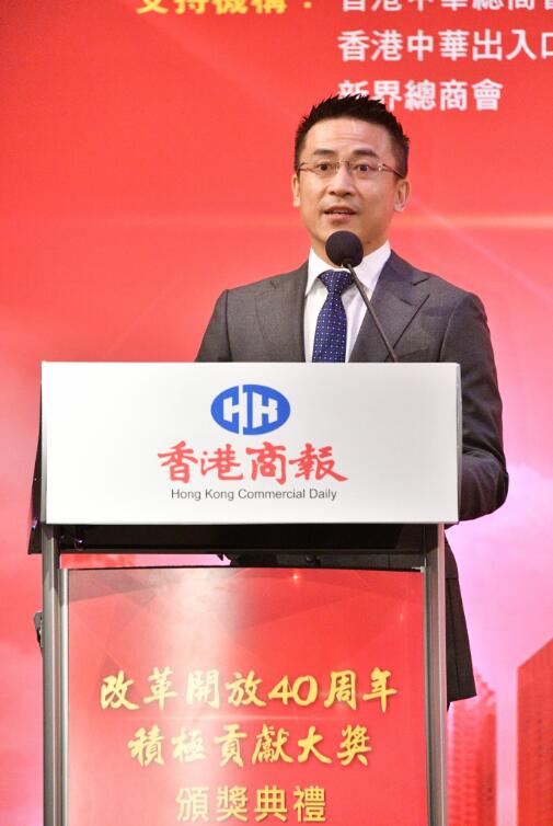 在此,感謝《香港商報》舉辦這個十分有意義的活動,同時頒發了「積極貢獻」這個獎項給我。也非常感謝,可以借助這個機會與在場各位名賢、工商界名流互相學習、交流。