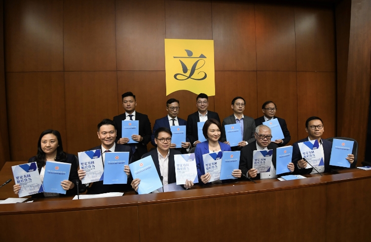 周浩鼎(前左二)早前出席民建聯全體立法會議員回應施政報告記者會,他歡迎行政長官聆聽其意見。