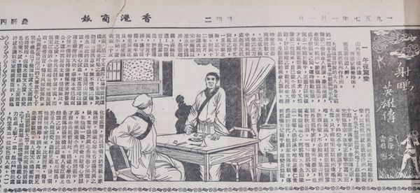 金庸留給世人的是一個豐滿的武俠世界和將這個世界建造起來的多部武俠巨著,而其成名作、代表作《射鵰英雄傳》就是在香港商報刊登的,由1957年1月1日寫到1959年5月19日,金庸用了862天連載完全書。而在《射鵰英雄傳》刊出前,金庸已在商報連載了《碧血劍》。一連兩部佳作,令當年銷量日佳的商報如虎添翼,一時洛陽紙貴。這段筆墨情緣,成為文壇報史的佳話。