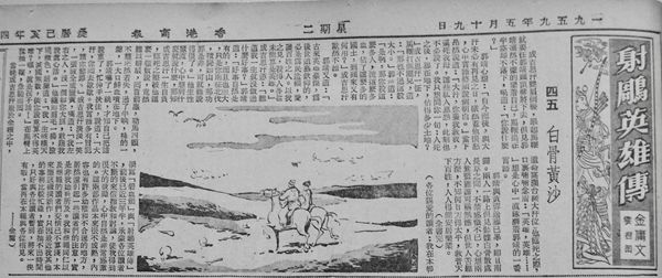 《射鵰英雄傳》在本報刊出的第一篇。資料圖片