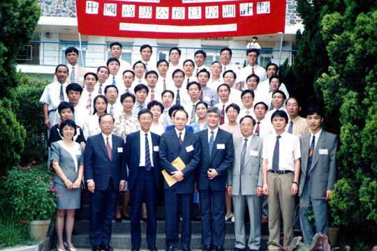 1993年中國高級公務員培訓計劃在香港中文大學校外進修學院舉行。圖中前排左四為霍震寰。