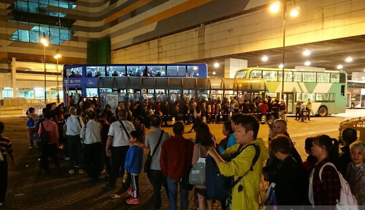 由於入境旅客多達5萬人,當中不少旅行團抵港後,即乘巴士前往最近大橋的東湧市中心,令東湧變得人山人海。在東湧港鐵站外,等候接駁巴士B6綫前往香港口岸的人龍開始增多,延伸至附近東薈城對開的露天廣場,大部分是內地旅客。該商場客流比以往假日明顯增加,多間商舖都出現人潮,但通道因而變得擠湧,超級市場貨架上部分牌子的奶粉被掃清,結帳櫃位出現人龍,食肆亦同樣坐無虛席,東湧港鐵站外的公共空間坐滿人,部分旅客帶同行李席地而坐。