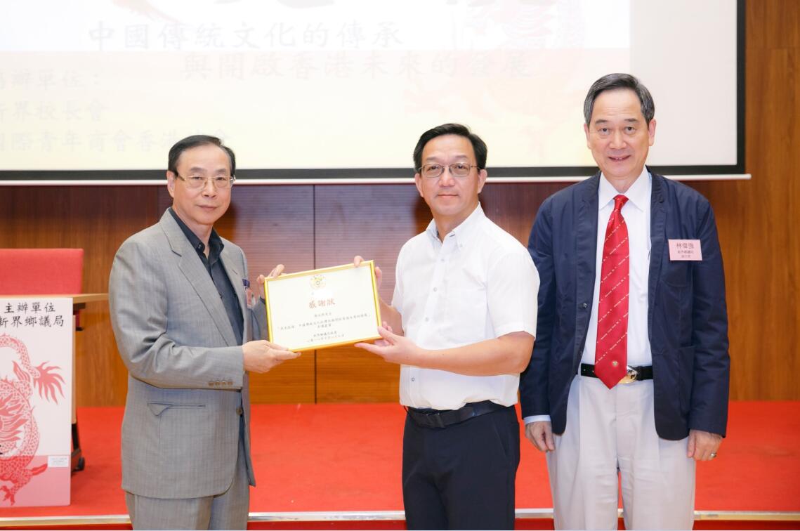 劉業強(中)、林偉強(右)向演講者薛浩然(左)頒發感謝狀。