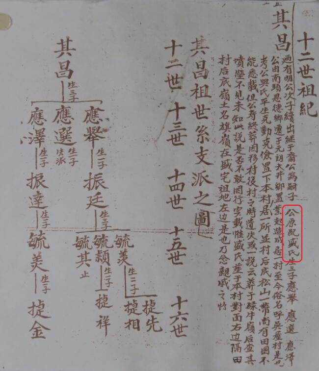 大井吳屋村《吳氏族譜》中記有十二世祖妣姓盛。