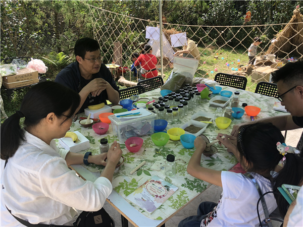 鳳園義工向市民教授親子手作。記者 馮煒強攝