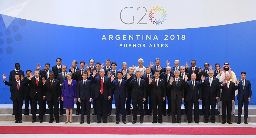 当地时间中午,峰会开始。阿根廷总统马克里主持。