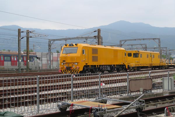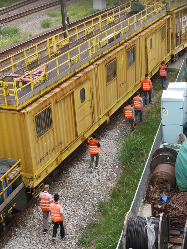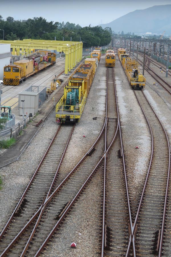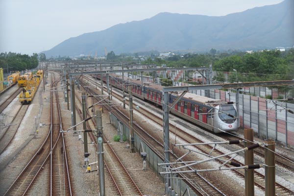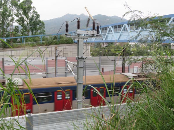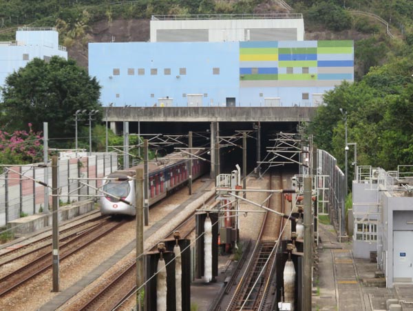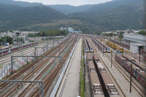 隔音屏內的火車每隔數分鐘穿過車廠範圍,轟隆駛往大欖隧道或錦上路站。