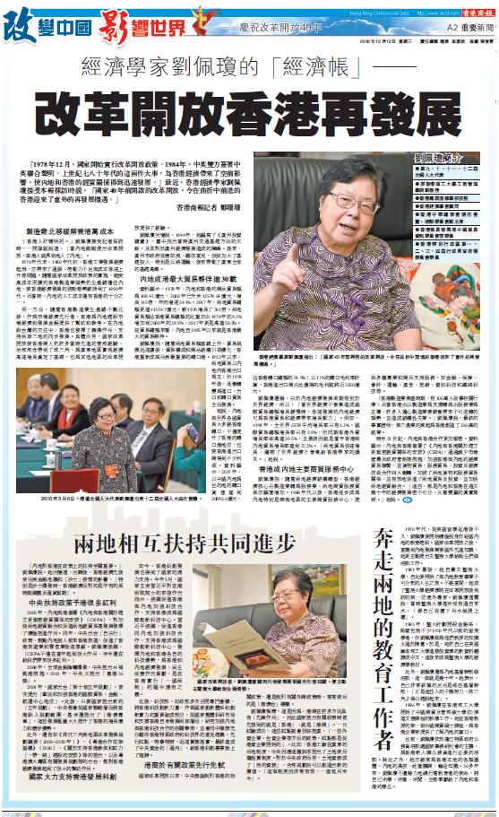 香港經濟學家劉佩瓊指出:「國家40年前開啟的改革開放,令在曲折中前進的香港迎來了意外的再發展機遇。」