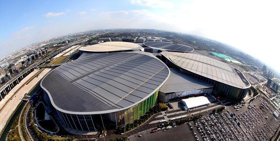这是2018年10月19日无人机拍摄的首届中国国际进口博览会主场馆——国家会展中心(上海)。新华社