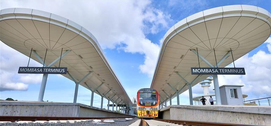 这是2018年6月1日拍摄的列车停靠在肯尼亚蒙内铁路蒙巴萨站。由中国承建的蒙巴萨-内罗毕标轨铁路(蒙内铁路)全长约480公里,于2017年5月通车。新华社