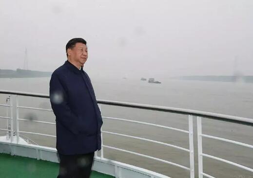 2018年4月25日,习近平在荆州港码头登上轮船,顺江而下,考察长江