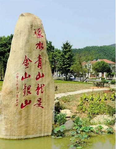 浙江省安吉县余村村口的巨石上刻着“绿水青山就是金山银山”十个红色大字