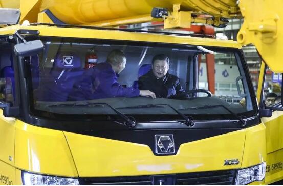2017年12月12日,正在徐工集团考察的习近平,坐进刚下线的XCA220型全地面起重机驾驶室,向技术人员详细询问起重机的性能、产量、价格等