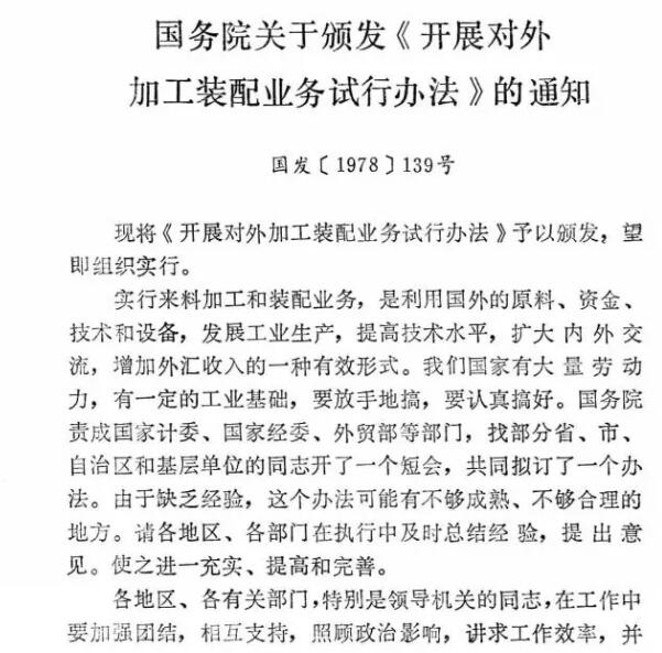 这一年7月,国务院颁发了《开展对外加工装配业务试行办法》,规定广东、福建可以实行来料加工试点。与中资机构华润公司有业务往来的张子弥,经介绍找到东莞一家竹器厂厂房,开始张罗在内地设厂。