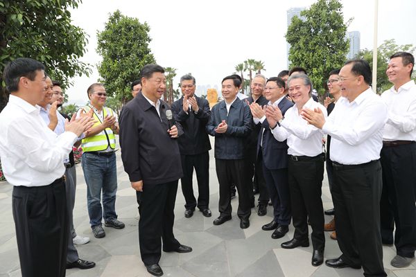 今年10月下旬,習近平赴深圳考察調研。這是他在前海石前與一眾前海建設者和見證者代表同話滄桑巨變。 新華社(資料圖片)
