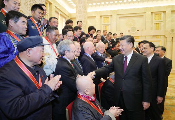 慶祝改革開放40周年大會昨於人民大會堂隆重舉行。在發表重要講話前,國家主席習近平與其他領導人首先為獲「改革先鋒」稱號、中國改革友誼獎章人員頒獎。這是中國政府首次給予改革開放貢獻者以國家級別獎章。