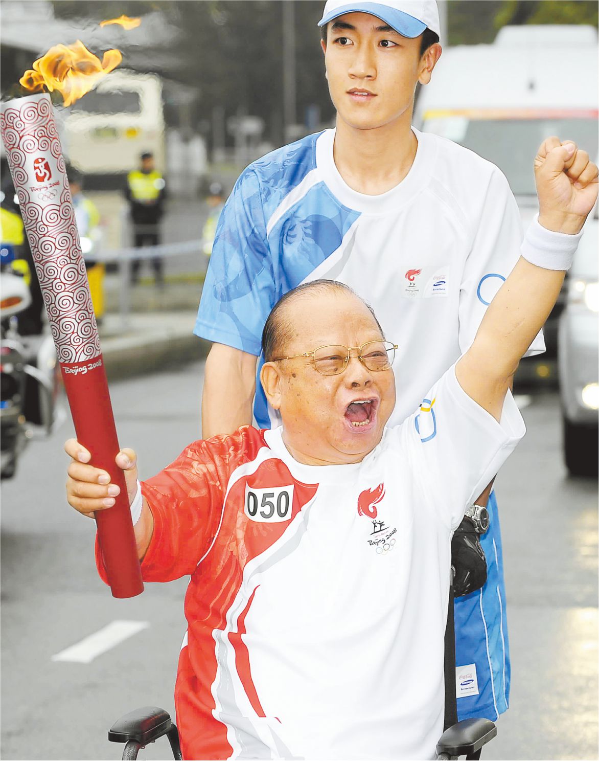 图说:曾憲梓2008年成立「曾憲梓體育基金會」,並擔任北京奧運香港區火炬手。 (新華社圖片)